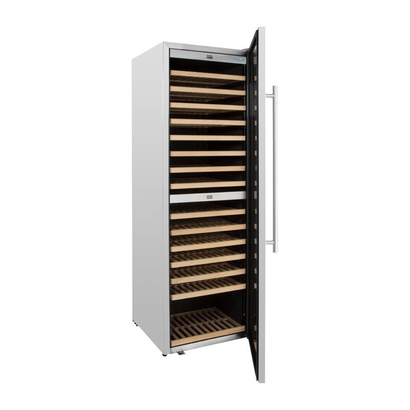 Gardez vos vins parfaitement frais et prêts à être servis avec la cave à vin à double zone Polar Série G. Avec une capacité jusqu'à 172 bouteilles de vin sur 15 étagères et la fonctionnalité double zone permettant de stocker à deux températures différentes, stockez une grande variété de vins dans une seule unité. La cave est parfaite pour tous les types de vin - qu'il s'agisse de rouge, de blanc, de rosé ou même de vins pétillants, vous pouvez toujours avoir une excellente sélection sur votre carte des vins. Et comme le compartiment inférieur peut également chauffer, vous pouvez être sûr que les rouges soient maintenus à la température de service parfaite. Une fois le service terminé, la cave peut être verrouillée.