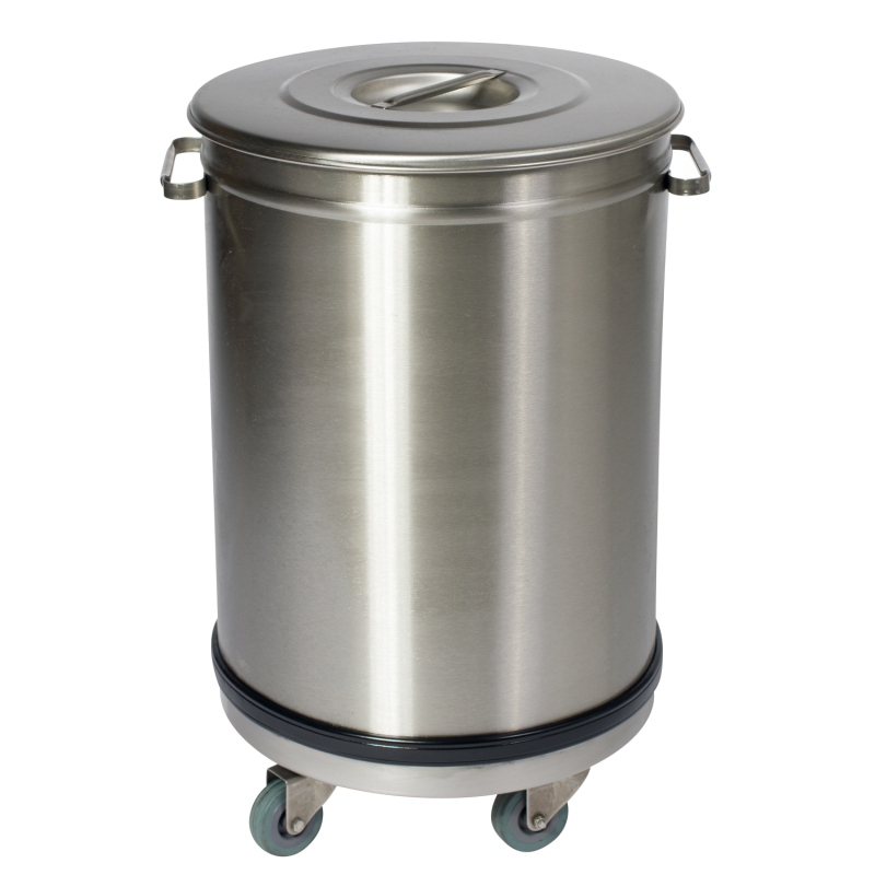 Poubelle INOX 50L - roulettes sans pédales - Couvercle amovible + ppignées